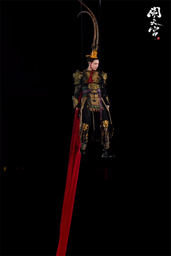 整场演出以“美猴王闹天宫”为主题,打造出“画卷天宫”的视觉概念,在传承经典的同时赋予传统文化新的时代内涵。音乐编排上,演出突破了传统音乐与现代流行音乐的界限,陕北说书的叙事性与电子乐节奏巧妙结合,侗族大歌的多声部合唱融入国际化编曲,唢呐、二胡等传统乐器的运用成为旋律中的鲜明标识。