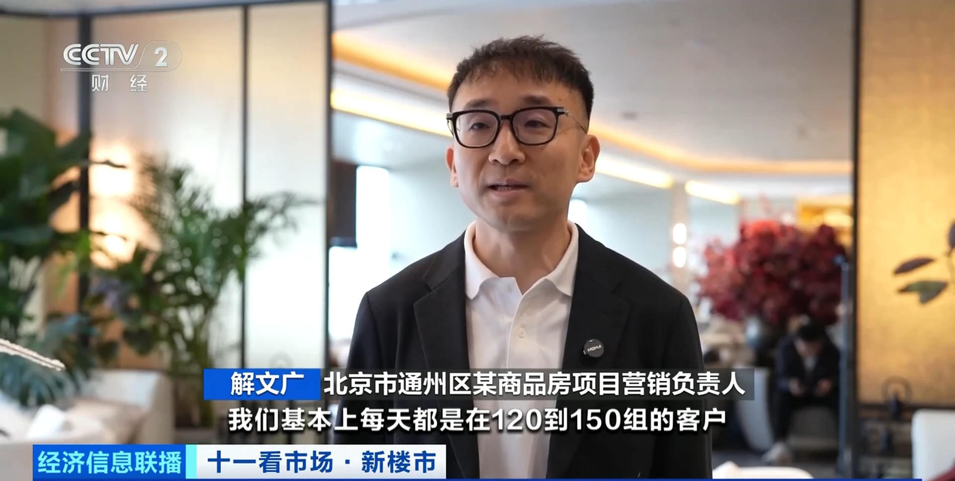 北京市通州区某商品房项目营销负责人 解文广:到国庆节,我们基本上每天都是在120到150组的客户。我们的销售转化,每天会在八到十组认购客户之间的成交量。