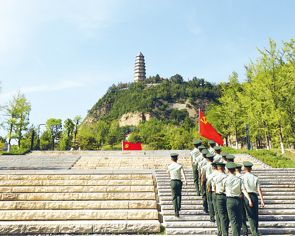 武警陕西总队延安支队组织党员到宝塔山开展专题党日活动(资料照片)。杜威龙摄