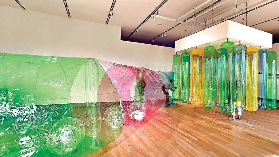 複製版阿根廷籍藝術家瑪爾塔·米努金的《來打滾和生活吧!》由不同色彩的軟雕塑構成,配以英國搖滾樂團披頭四的音樂。觀眾可進入這一空間感受被包裹的安全感。