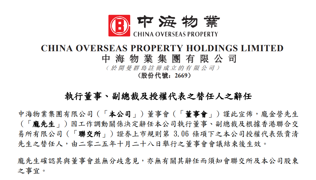 中海物业副总裁庞金营离职,去年薪酬“腰斩”至169万元
