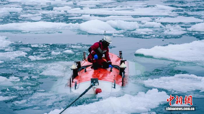 图为2025年9月,蛙人在北极密集冰区回收“奋斗者”号。(中国科学院深海科学与工程研究所 供图)