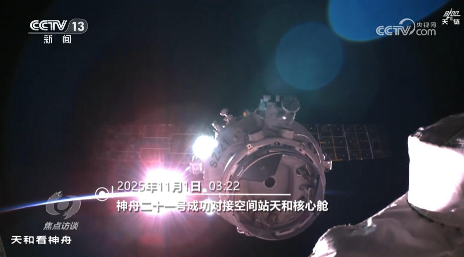 央视网消息(焦点访谈):北京时间2025年11月1日4时58分,在轨执行任务的神舟二十号航天员乘组顺利打开“家门”,欢迎远道而来的神舟二十一号航天员乘组入驻中国空间站,成功实现了中国航天史上第7次“太空会师”。神舟二十一号与中国空间站整个交会对接的过程运行稳定、控制精准。这是我国载人飞船首次采用3.5小时交会对接方案,标志着我国载人航天自主快速交会对接技术实现了又一突破。