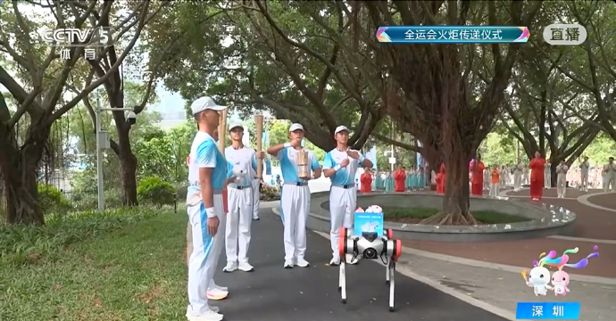 与历届全运会相比,本次火炬传递首次在组织形式上实现“三地联动、四城同传”,并在传递方式上引入智能科技元素。其中,“夸父”人形机器人作为特殊火炬手在深圳亮相,手握1.6kg重量的火炬,完成第二棒与第三棒之间的传递;机器狗将全运会吉祥物交给火炬手。