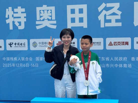 体育,成为照亮王德康成长之路的一束光。带队参赛的教练员黄智生见证了他的蜕变:“我和他接触的时间不算多,但每次见他,都能感受到变化。”加入特奥队后,王德康不仅体能明显提升,沟通能力和人际交往也进步显著。“以前他不太敢跟人说话,现在会主动和队友打招呼,还能自己整理行李、洗衣服、系鞋带,”黄智生说。这些生活技能的进步,比奖牌更加珍贵。在他看来,自闭症孩子和普通孩子一样有着无限潜力,需要的只是一个展示自己的舞台。