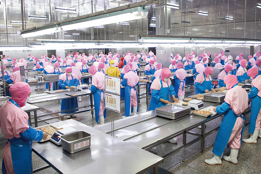 走进禾丰旗下的沈阳华康新新食品有限公司,一只只屠宰后的“禾丰鸡”被送入食品加工车间,经过分割、切块、烤制等一系列工序,各类鸡肉熟食源源不断下线,打包发往韩国。