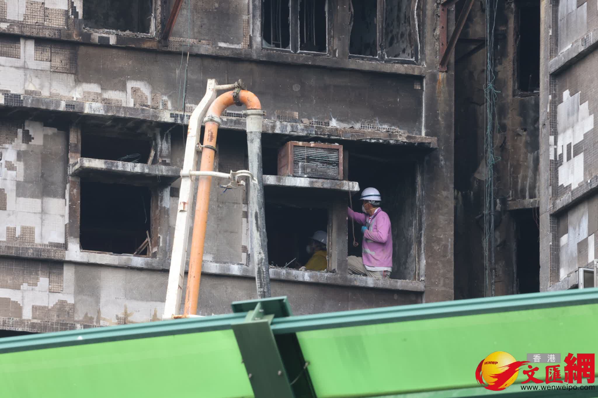 大埔宏福苑大火│(有片)警方繼續搜索調查 工人宏昌閣進行灌漿加固工程