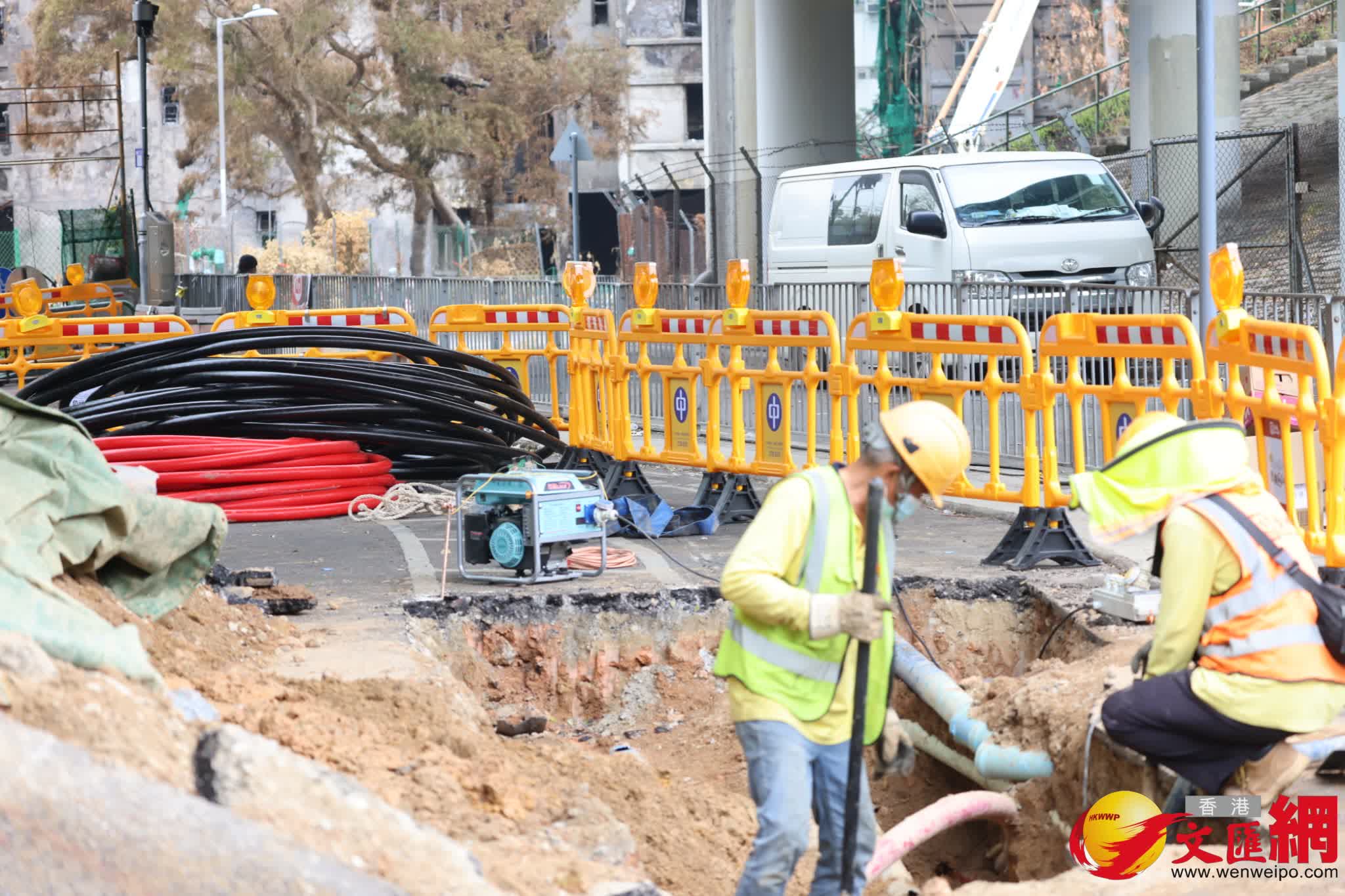 中電工程人員進行重舖地底電纜工程。香港文匯報記者劉友光攝