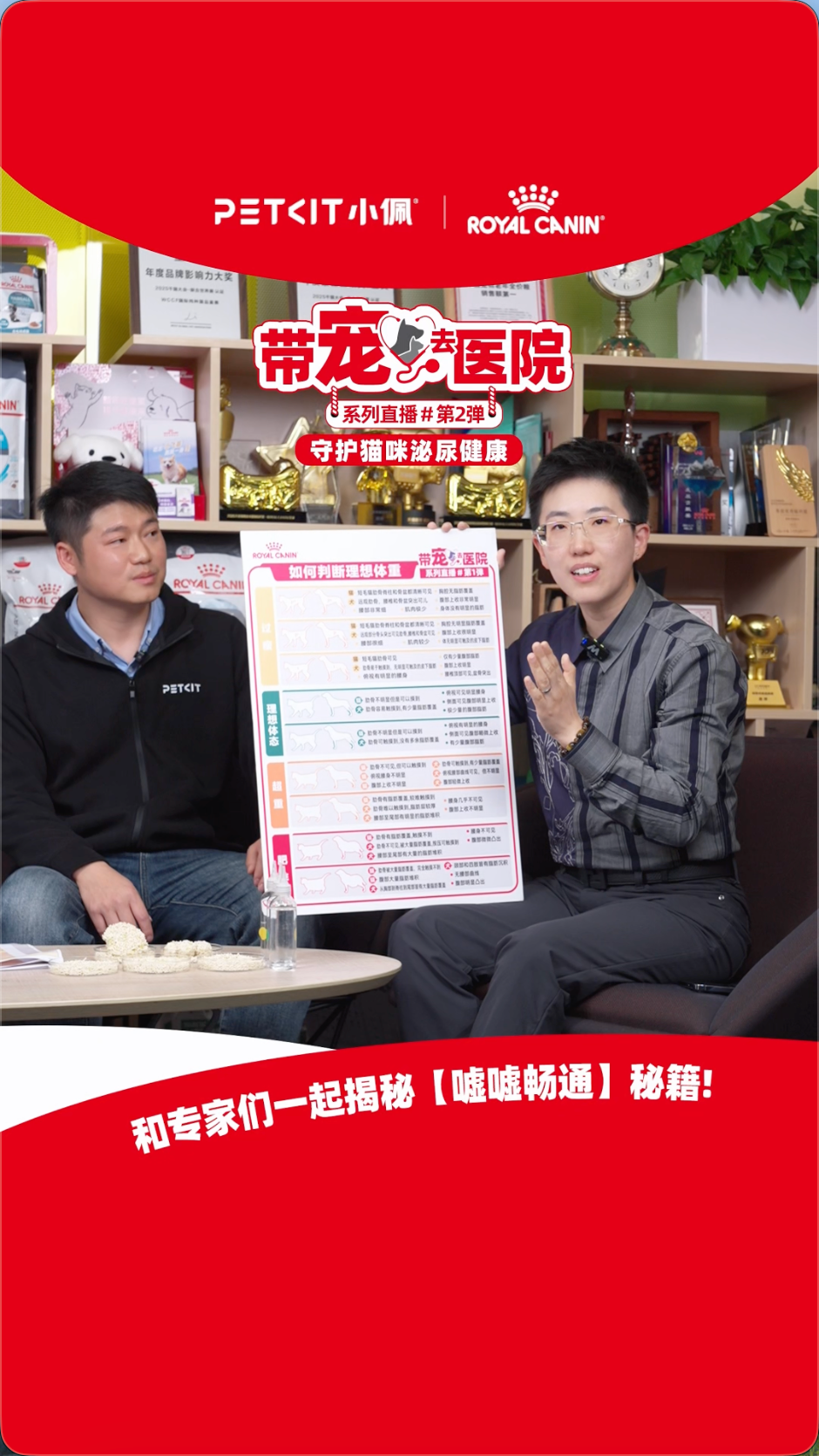 与此同时,皇家携手宠物智能用品品牌PETKIT小佩,聚焦宠物泌尿健康痛点,首次打造品牌守护猫咪泌尿健康联合社群。双方整合彼此在精准营养与智能科技领域的优势,深入泌尿健康问题具体场景,共同打造了“从疾病预防到日常养护”的一站式、场景化教育内容体系。双方以专场直播、社群问诊等形式,重塑了居家环境下宠物泌尿道健康的管理新范式,将泌尿健康管理前置并融入日常。本次合作共吸引上千名宠主参与社群互动及直播。