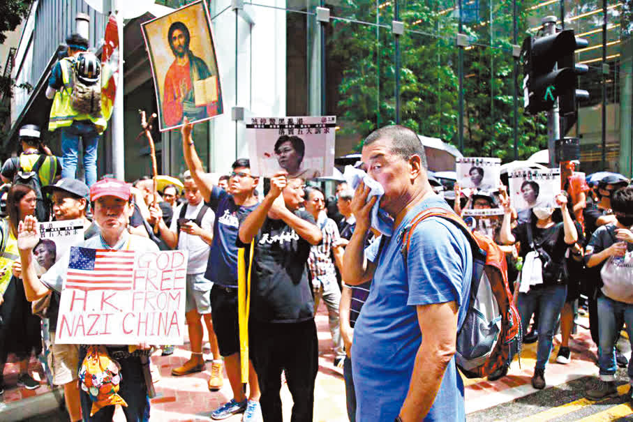 2019年11月,特朗普簽署所謂的《香港人權與民主》法案,黎智英向時任蘋果動新聞平台總監張志偉發信息稱:「非常好,現在所有人都鬆一口氣。」在另一個群組中,黎智英亦稱,「特朗普知道他在中美談判,香港是有力的籌碼。」