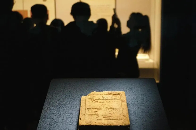 2023年3月3日,“大河文明展”在河南省郑州博物馆开展。图为展出的古代两河流域文物楔形文字泥板。中新社记者 韩章云摄
